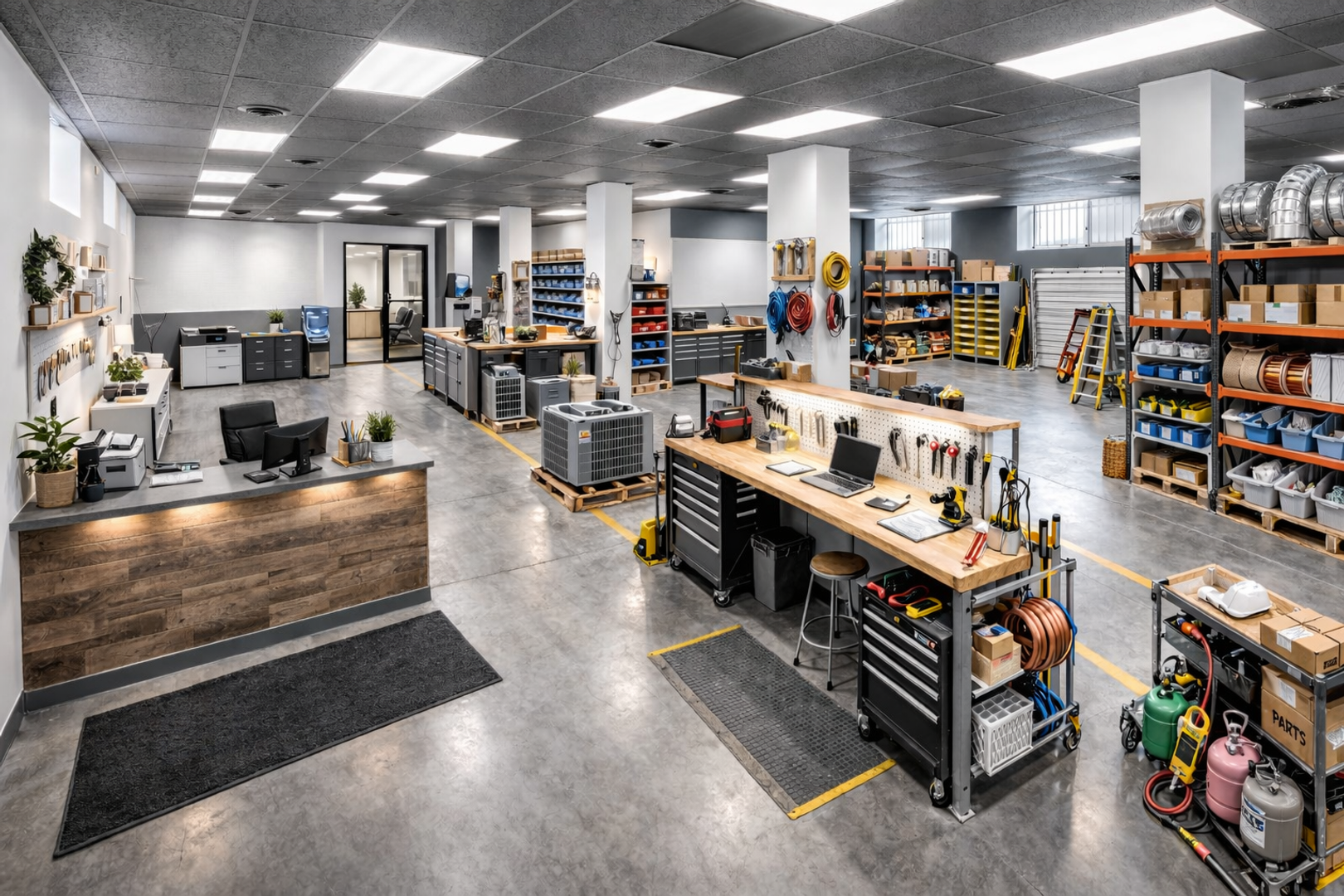 This highly functional commercial space offers a large open warehouse and operational area ideal for contractors, service companies, distribution users, light assembly, or e-commerce fulfillment. The expansive open layout provides flexible workspace for inventory storage, equipment staging, or fleet-based businesses needing room to operate efficiently.